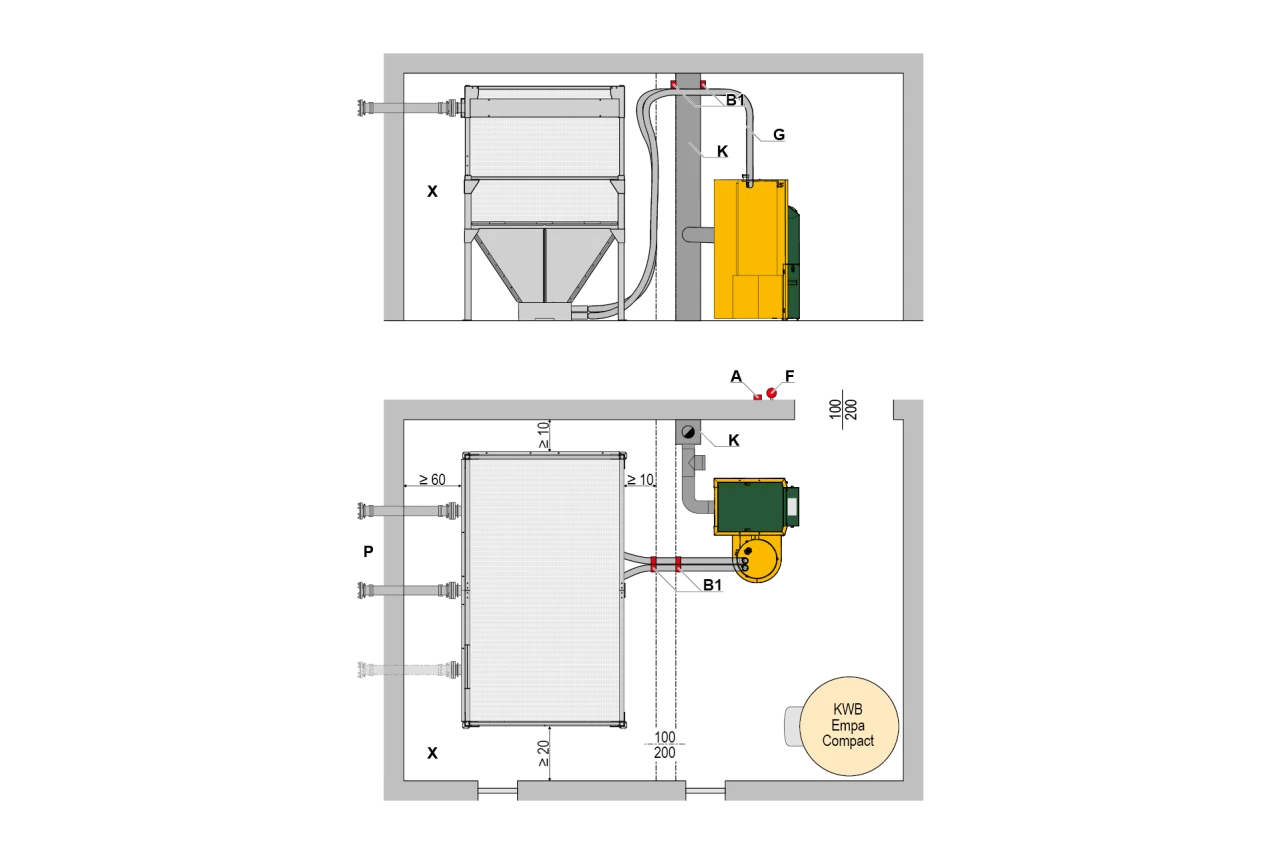 Kann neben, über oder unter dem Heizraum platziert werden und passt sich individuellen Raumverhältnissen an.
