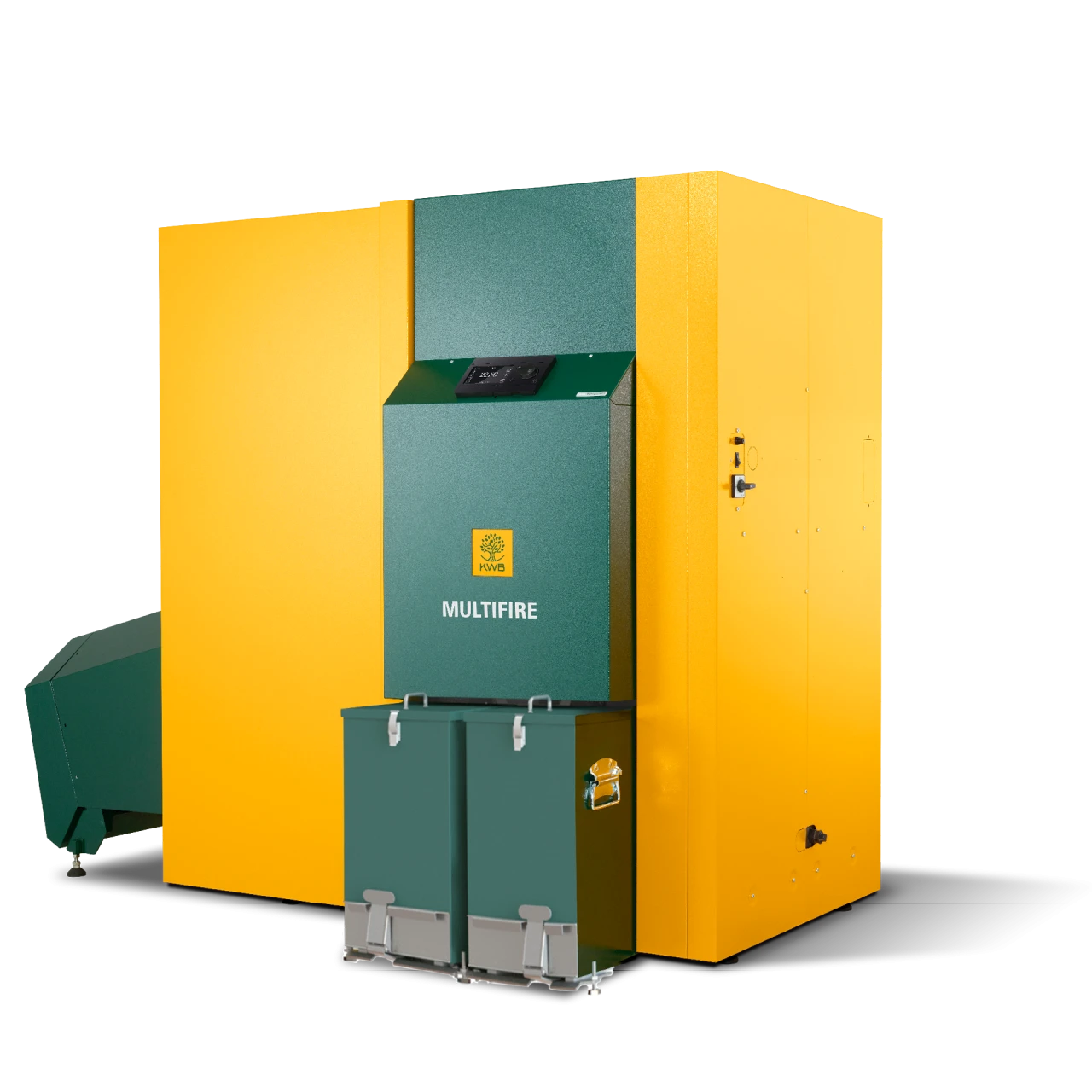 Der KWB Multifire 2 kann optional mit einem 175 l großen Zwischenbehälter ausgestattet werden. Dieser wird automatisch mit Hackgut aus dem Lagerraum befüllt. Das bedeutet, dass das Fördersystem seltener startet und Hackgut nur dann befördert, wenn der Zwischenbehälter leer ist. So werden Geräuschentwicklung und Strombedarf minimiert. Damit kann sich der Kessel bei Bedarf (z. B. bei Nachtruhe) sogar aus diesem Zwischenbehälter mit Brennmaterial versorgen.